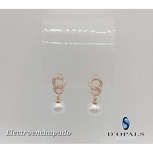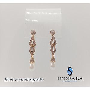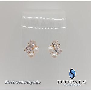 ARETE CON PERLA Y CRISTALES DE ELECTROENCHAPADO 18K