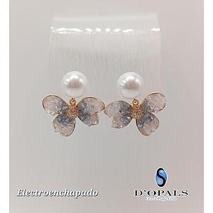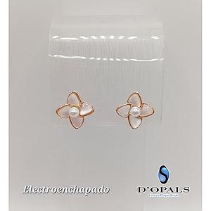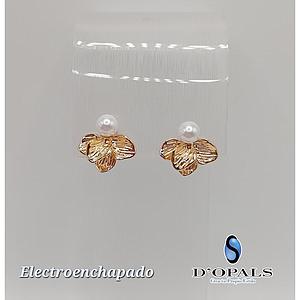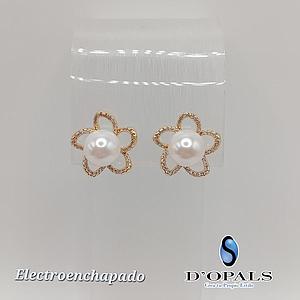ARETE DE FLOR CON PERLA ELECTROENCHAPADO 18K