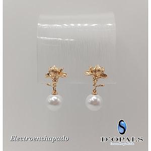 ARETE DE FLOR CON PERLA ELECTROENCHAPADO 18K